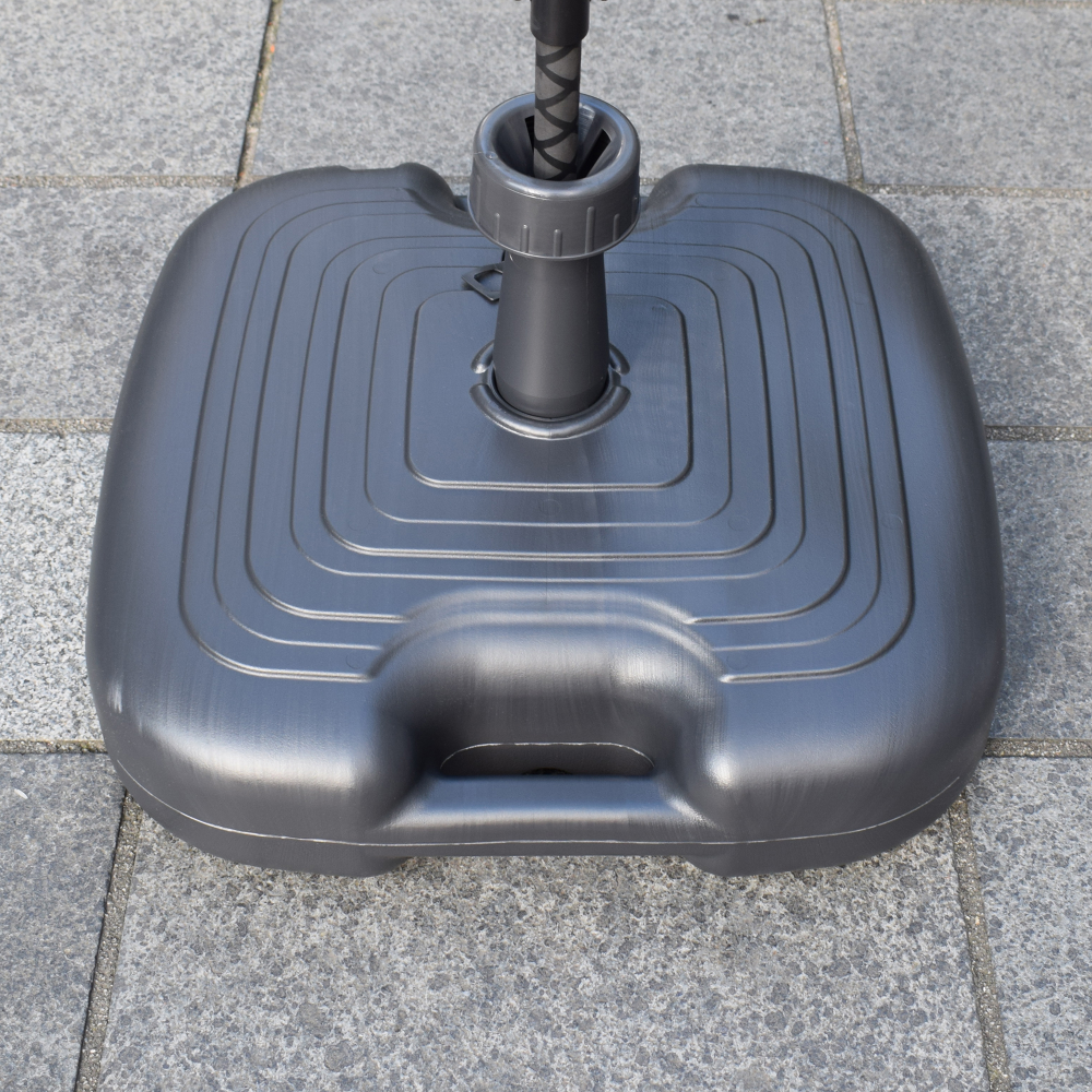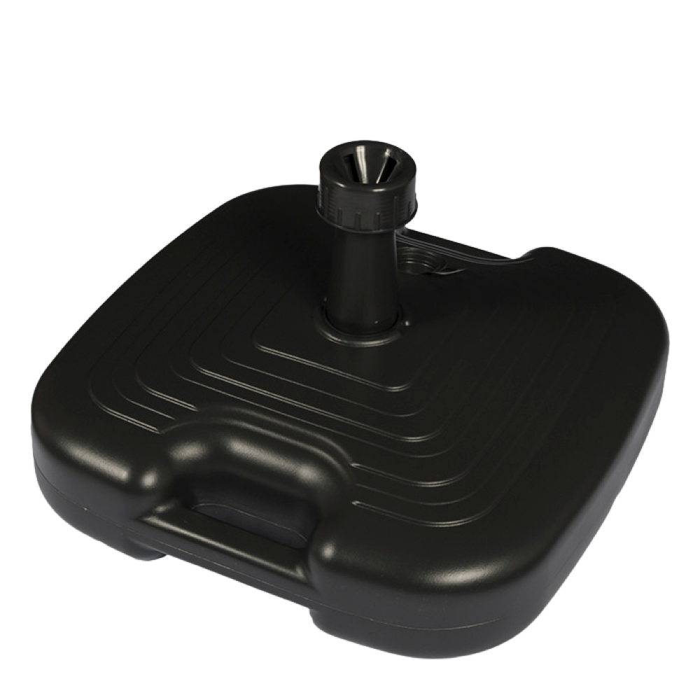 Cette base parasol est parfaite pour une utilisation sur la plupart des surfaces. C'est l'option la plus répandue pour maintenir les drapeaux de plage en place. Elles sont faciles à installer et leur poids et leur stabilité peuvent être facilement augmentés en ajoutant de l'eau ou du sable dans la base. Il est fortement recommandé d'ajouter un rotateur avec votre achat, afin de permettre à votre drapeau de pivoter dans la base et d'éviter qu'il ne s'abîme. Veuillez noter que des drapeaux excessivement grands ou des vents forts peuvent réduire la durée de vie de la base. Nous recommandons de le mettre à l'abri à l'intérieur par temps venteux.