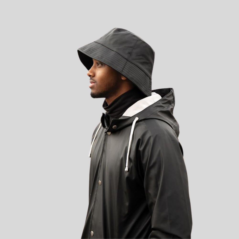 Ce chapeau seau épuré a un design épuré idéal pour les sorties décontractées ou les situations d'affaires relaxantes. Un accessoire polyvalent, il améliore toute tenue tout en offrant une protection contre la pluie légère et en assurant un ajustement confortable. Le chapeau, dans une taille universelle de 58 cm, est fait en PET recyclé.