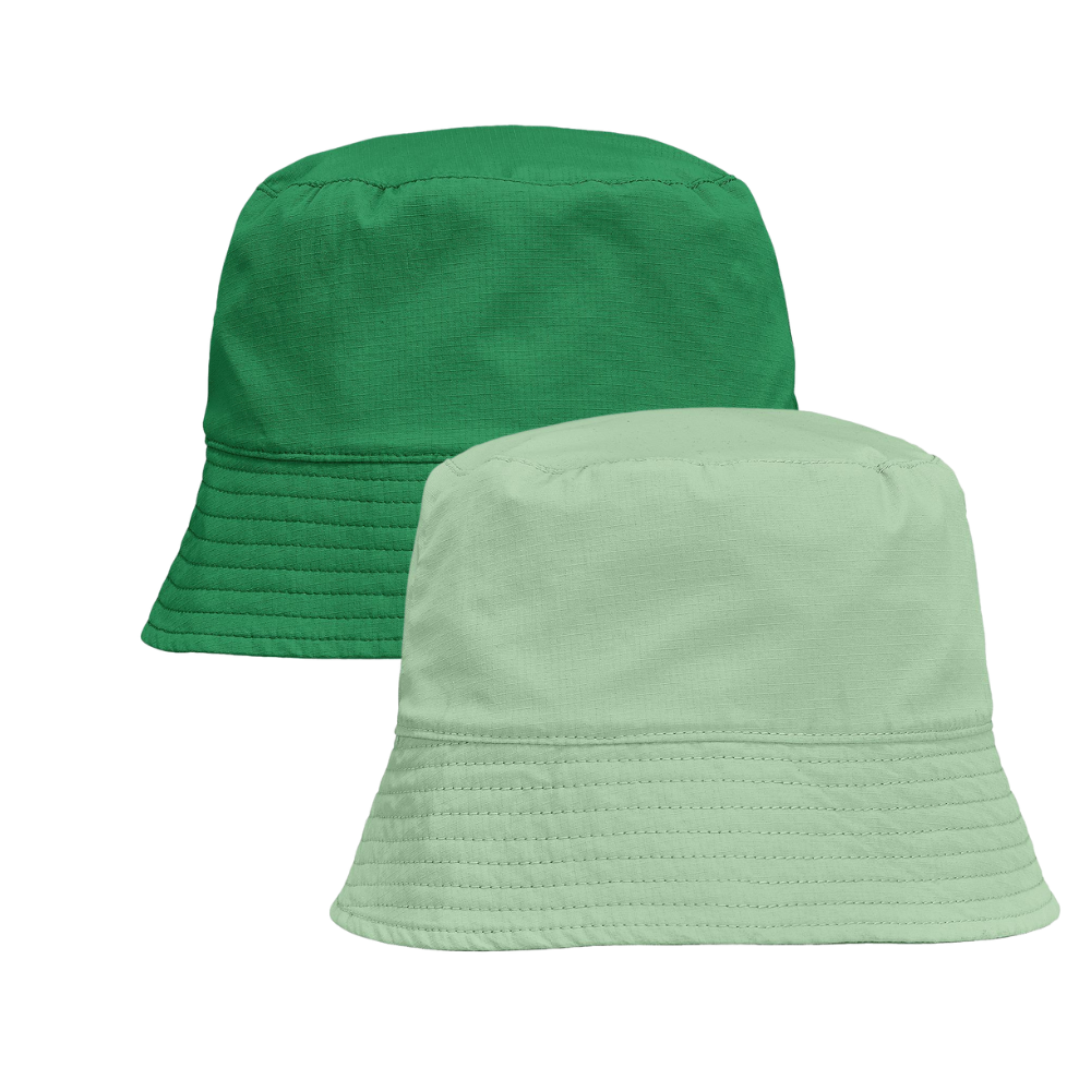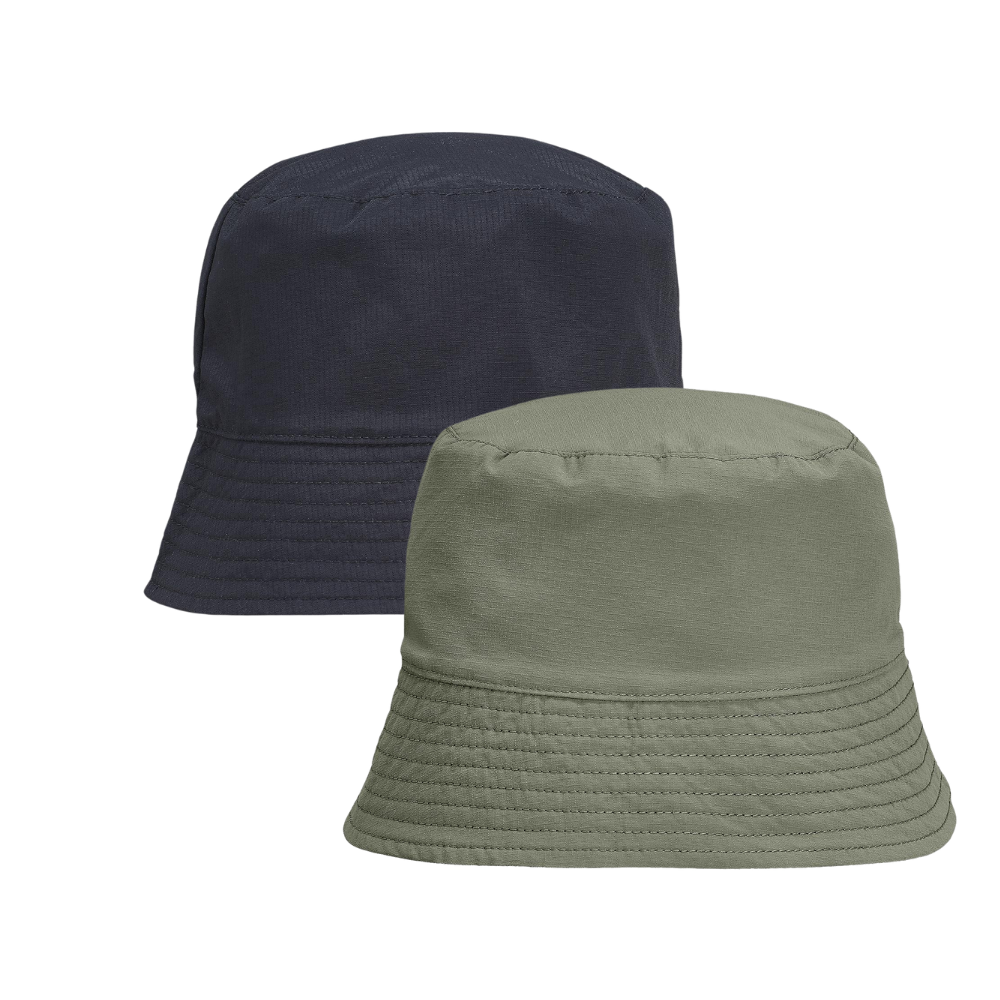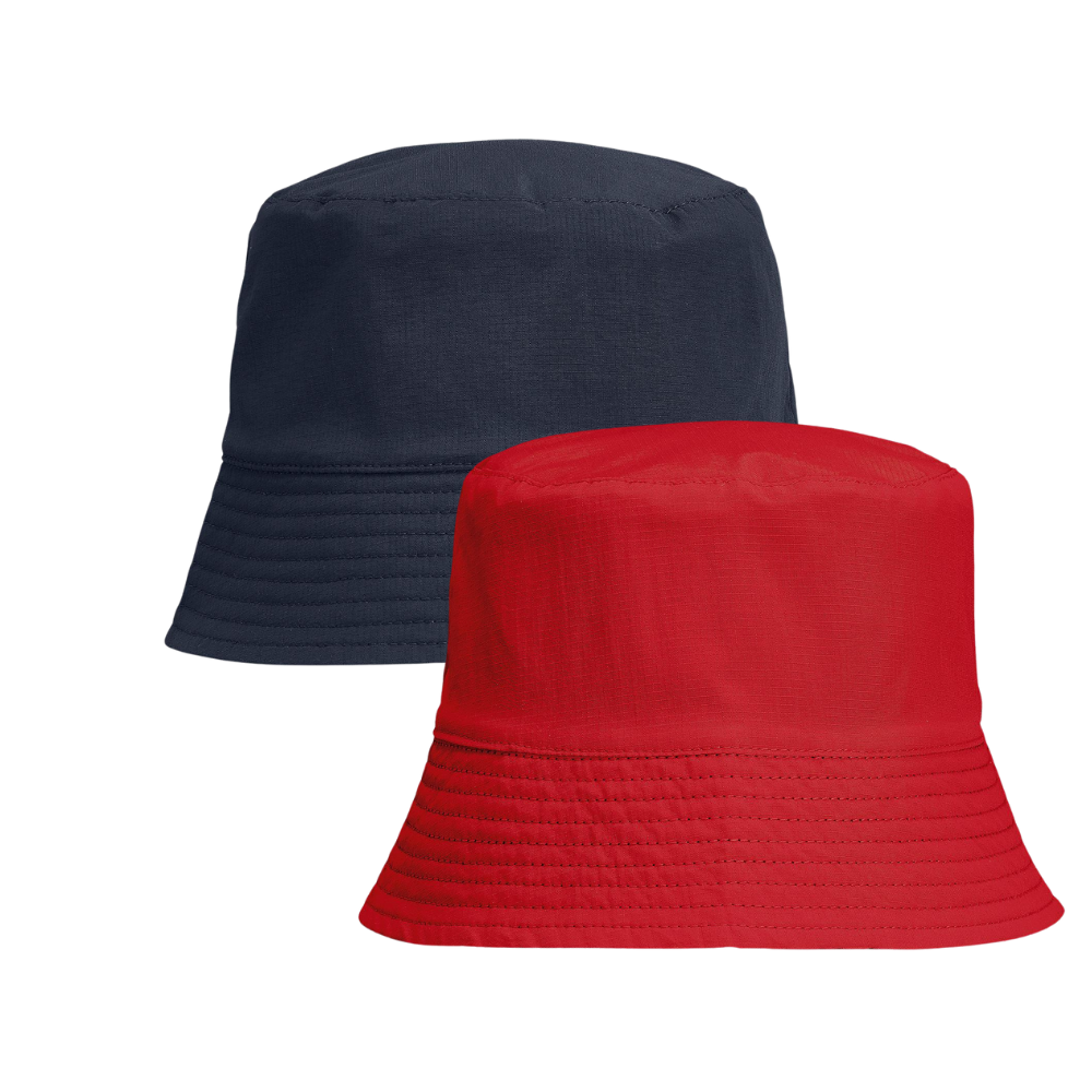 Un chapeau réversible résistant à l'eau en nylon recyclé. Il est léger et se présente en style bicolore.