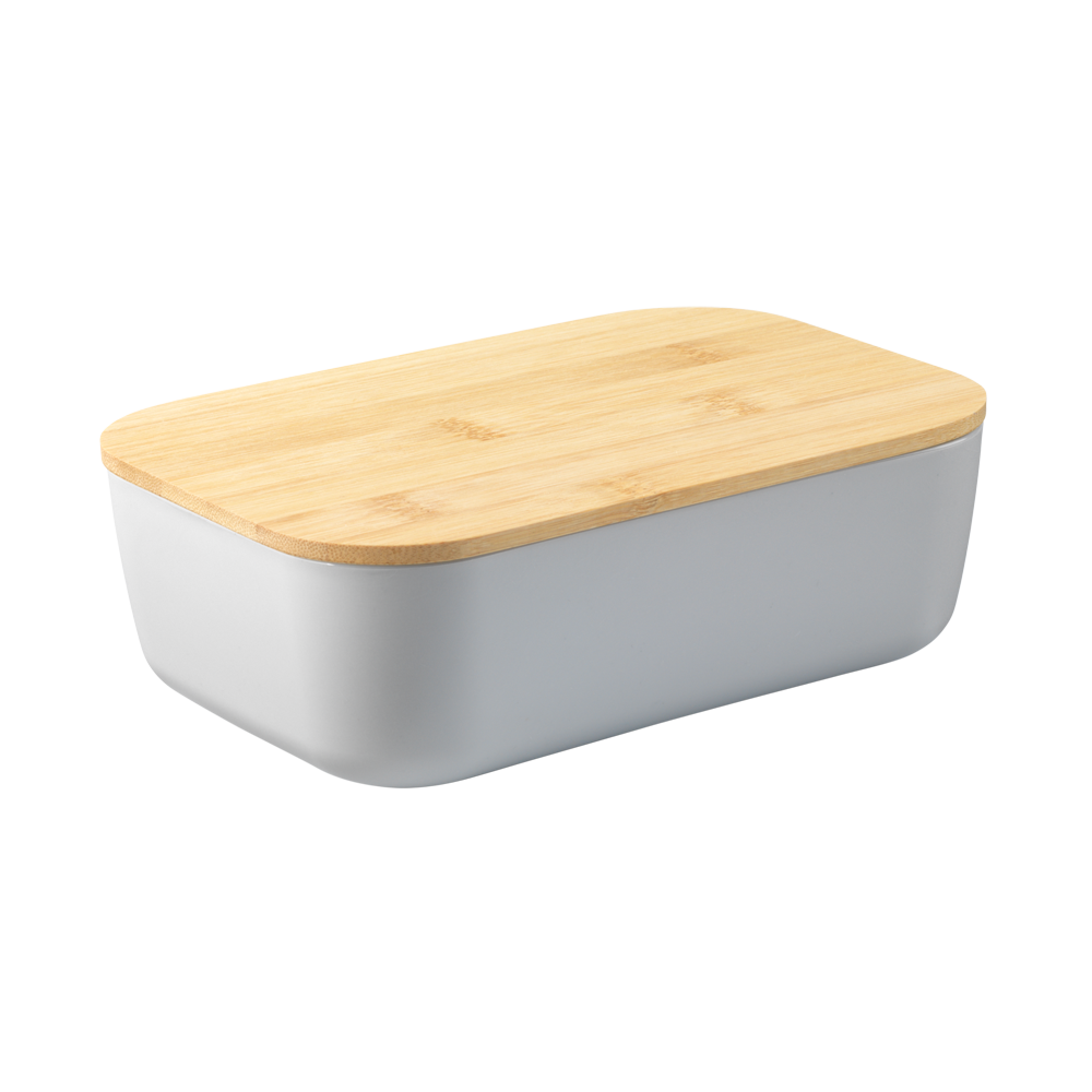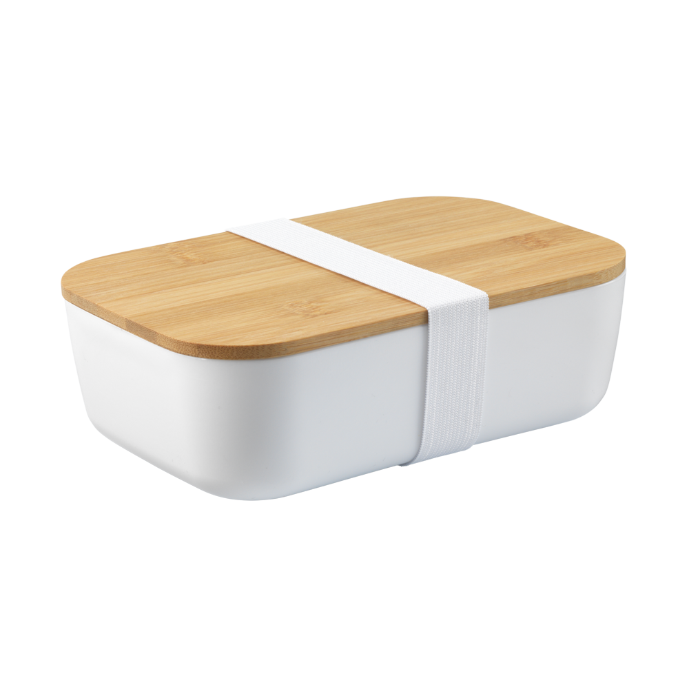 Il s'agit d'une boîte à lunch spacieuse en plastique PP. Le couvercle est en bambou naturel et comporte un élastique de fermeture. Parfaite pour votre déjeuner quotidien.