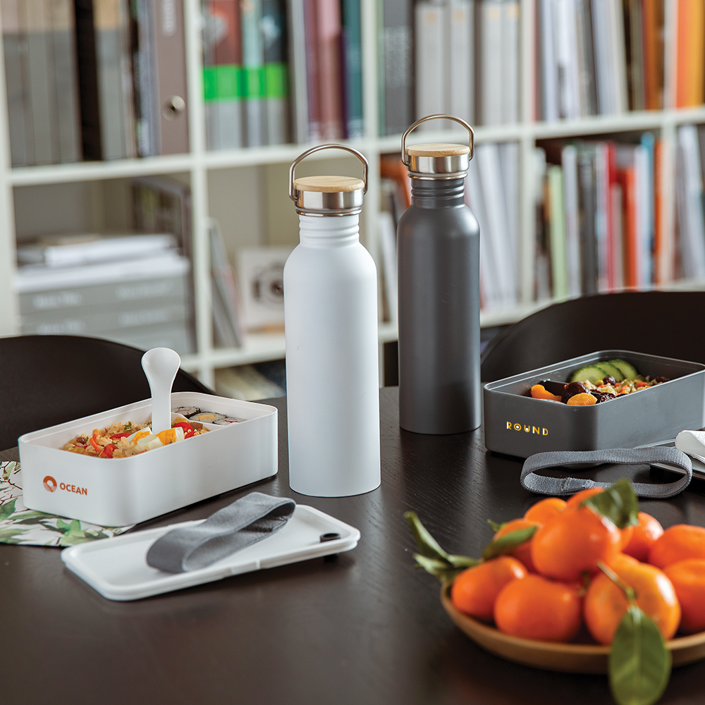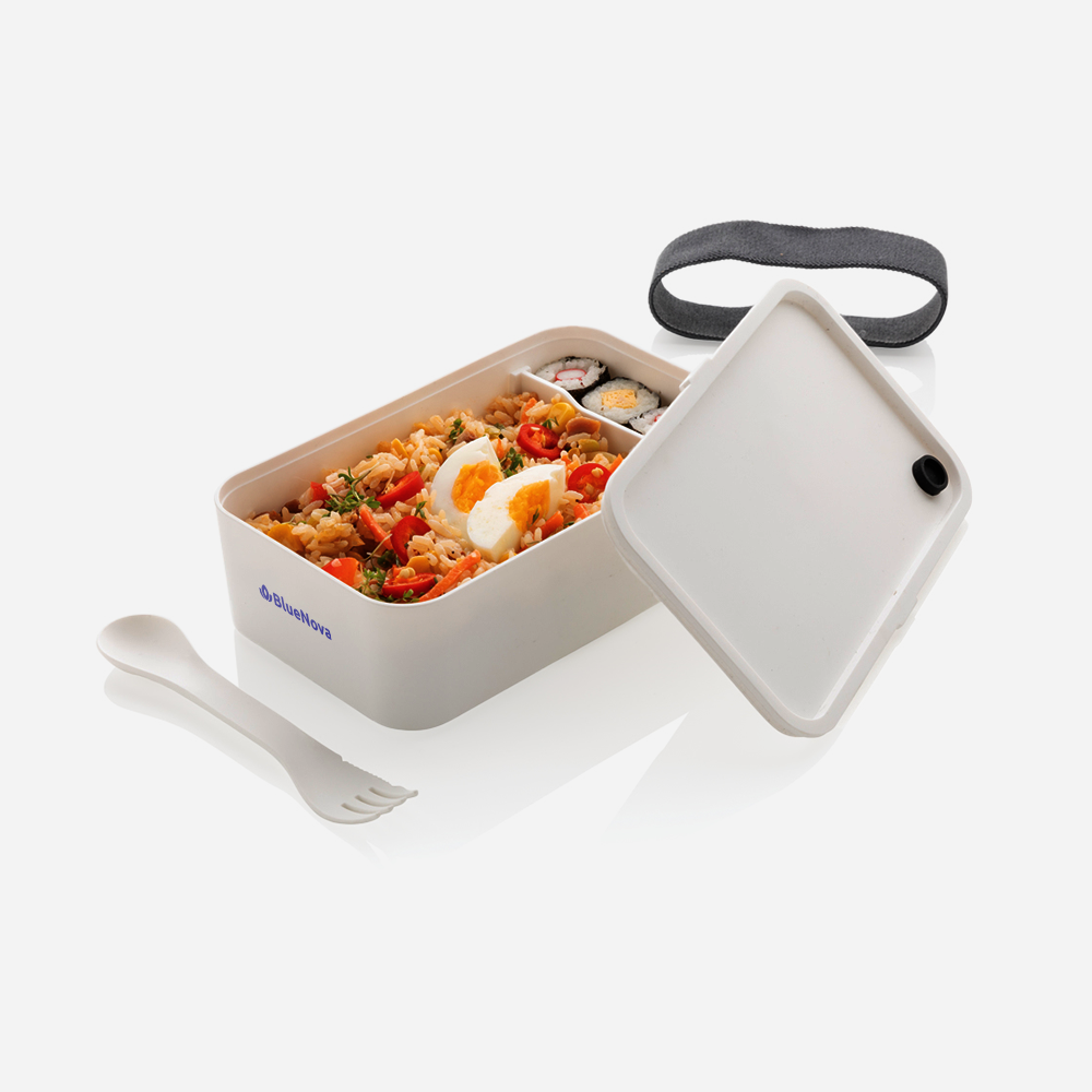 Taille parfaitement adaptée pour emballer des sandwiches et des salades. Livrée avec une fourchette pratique et une sangle élastique. Capacité de 0,8 litre. Facile à nettoyer. Veuillez éviter de le placer au lave-vaisselle ou de l'utiliser au micro-ondes.