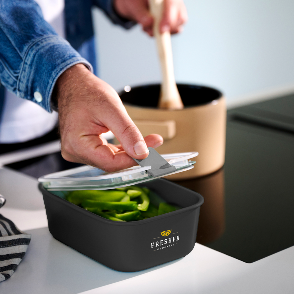 Gardez vos aliments frais et organisés grâce à cette boîte de rangement durable et peu encombrante. Fabriquée en plastique 100 % recyclable, elle est dotée d'un couvercle sécurisé qui se ferme de manière étanche aux fuites et à l'air en un seul clic. Idéale pour les restes, les légumes prédécoupés et les salades. Le couvercle transparent vous permet de voir le contenu en un coup d'œil. Parfaites pour les micro-ondes et les fours à vapeur, grâce à l'évent de vapeur unique dans le couvercle. Empilable et facile à ranger, elle répond parfaitement aux besoins de votre cuisine.