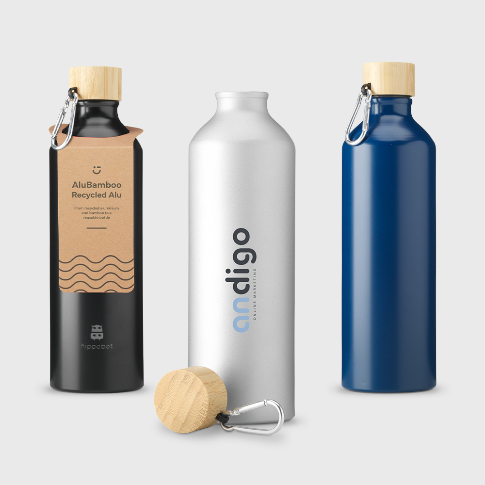 Cette bouteille à la mode est fabriquée à partir d'aluminium recyclé avec un bouchon à vis en bambou pour une touche supplémentaire de style. Idéal pour les déplacements, il est livré avec un mousqueton en aluminium pour le fixer facilement à votre sac ou à votre sac à dos. N'oubliez pas, il est uniquement approprié pour l'eau froide et non destiné au lave-vaisselle. Profitez du choix écologique avec 82% de matériel recyclé total. Cette bouteille légère dispose d'une capacité de 750 ml.