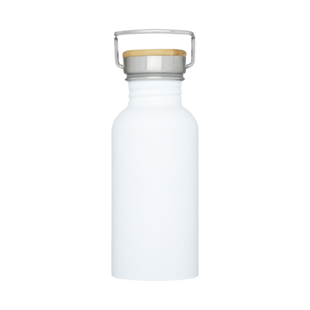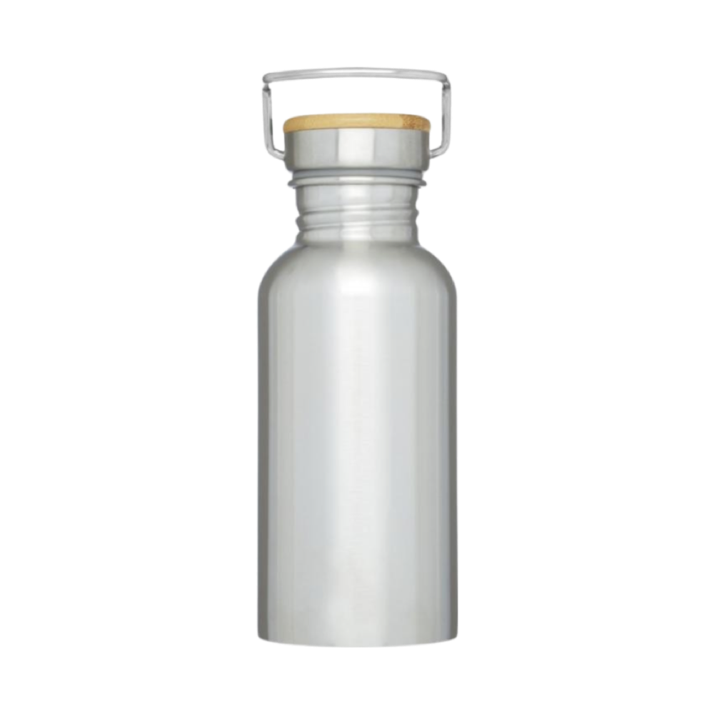 Découvrez notre bouteille en acier inoxydable à simple paroi, dotée d'un couvercle en bambou pratique et d'une poignée portable.<br>