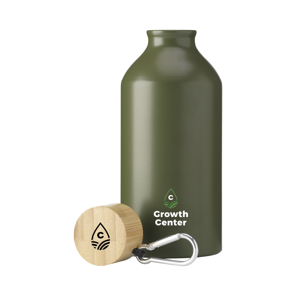 Bouteille en aluminium recyclé GRS avec bouchon en bambou