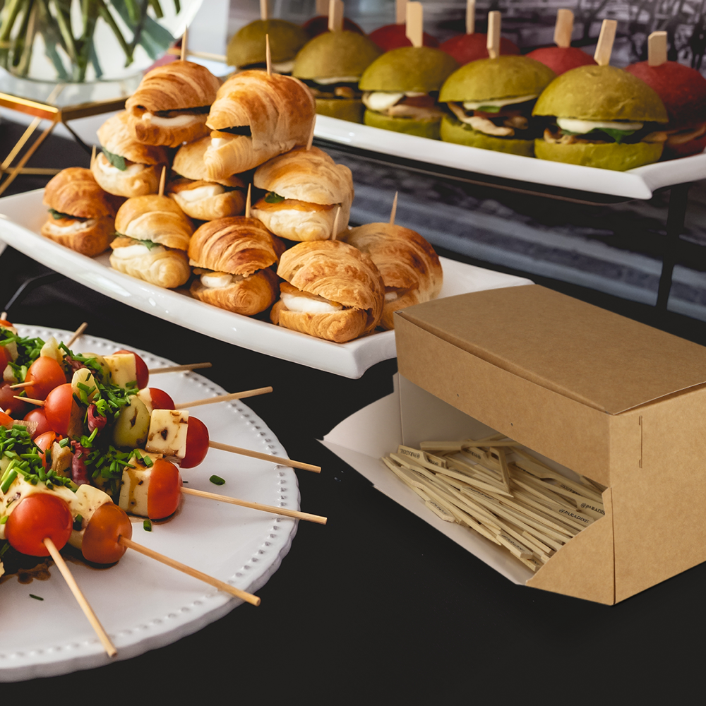 Avez-vous un événement à venir où vous voulez vraiment vous faire remarquer ? Faites-le avec vos propres brochettes personnalisées ! Fabriquées à base de 100% de bambou, une ressource naturelle et renouvelable, ces brochettes vous permettent de faire un geste pour la planète tout en étant un excellent outil promotionnel ! Ajoutez votre logo ou votre design aux brochettes et accompagnez-les de gourmandises de votre choix.