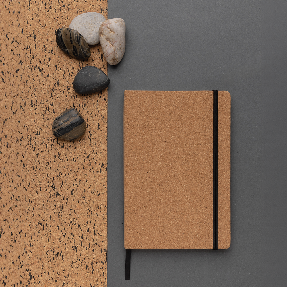 Apportez une touche naturelle avec ce carnet éco-responsable. Fabriqué en liège avec des pages en papier pierre durable, il offre une option à faible impact pour vos notes. Comprend un anneau noir, un marque-page ruban et une couverture rigide pour une durabilité accrue. À l'intérieur, vous trouverez des pages blanches lignées de haute qualité.