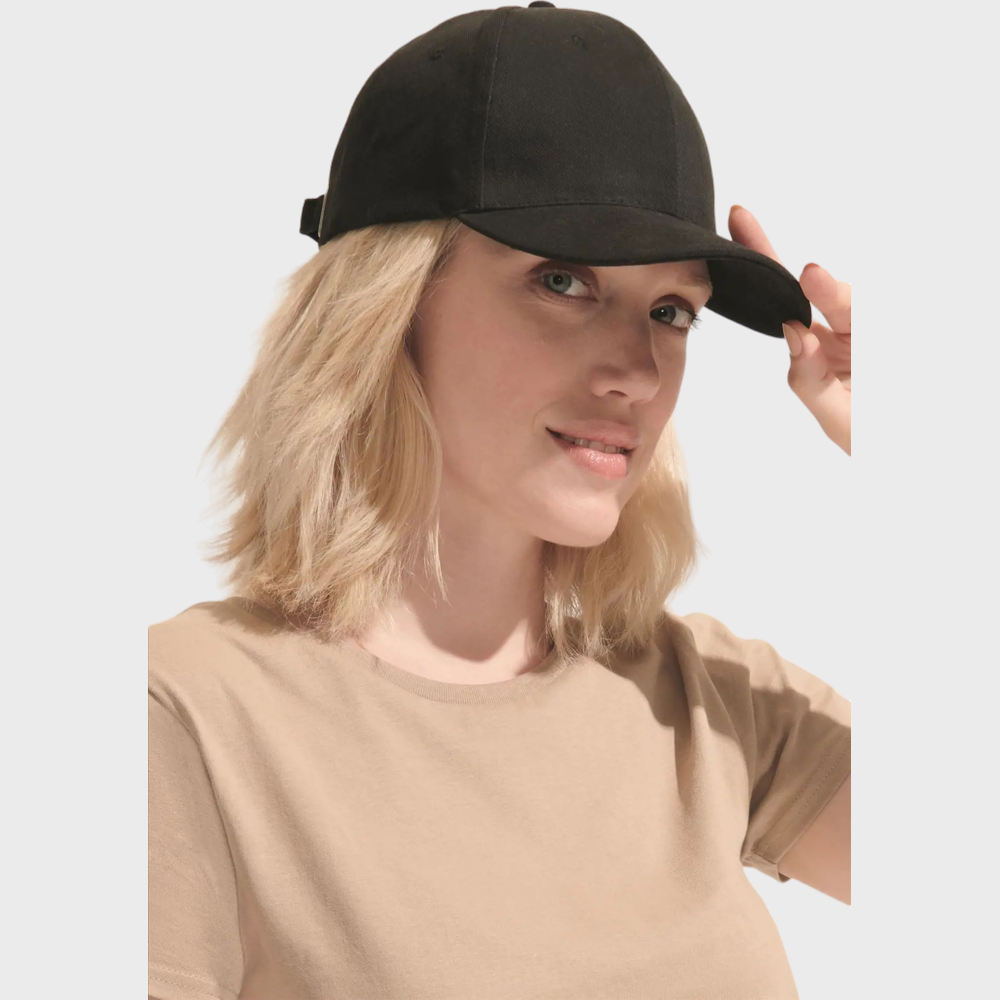 Parfait pour une journée dehors, cette casquette en coton 100% possède une visière préformée et six œillets de ventilation brodés. La casquette présente également une fermeture réglable avec une boucle métallique, offrant à la fois confort et style.