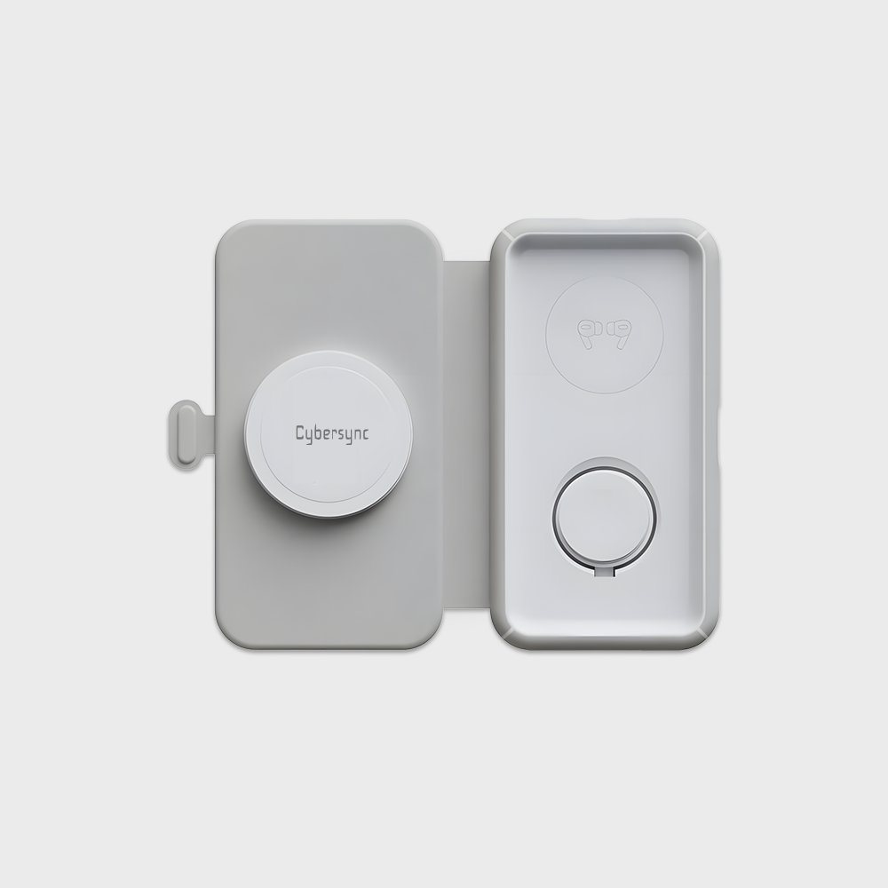 Chargez vos iPhone, Apple Watch et AirPods simultanément avec ce chargeur magnétique sans fil, compact, pliant et élégant. Idéal pour la maison, le bureau ou les voyages. Comprend un socle de chargement magnétique, un chargeur pour Apple Watch, et une surface sans fil Qi. Livré avec un câble de chargement USB-C Power Delivery et un manuel d'utilisation.