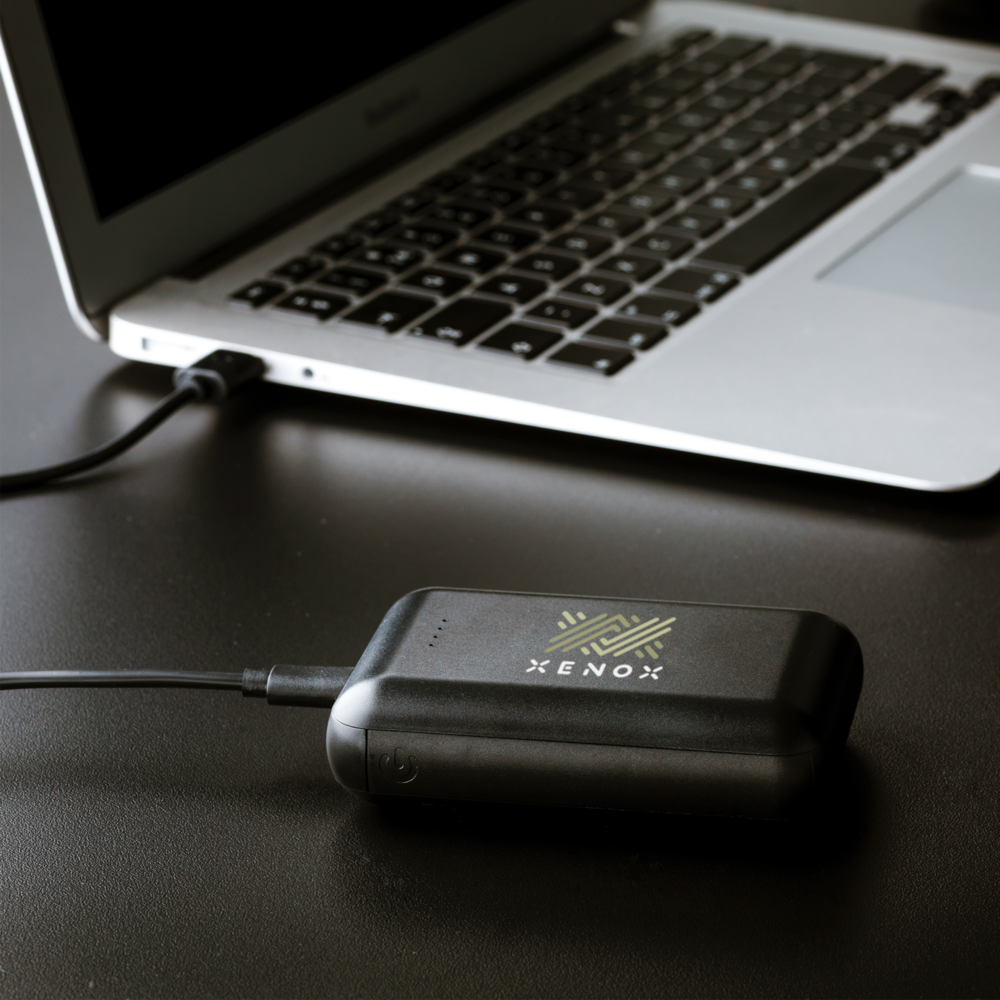 Découvrez notre banque d'alimentation de poche personnalisable : un chargeur sans fil compact et puissant en ABS recyclé. Avec une batterie de 10 000 mAh, elle est petite mais puissante, se glissant parfaitement dans votre poche pour une portabilité pratique. Chargez plusieurs appareils via 2 ports USB ou utilisez la fonction sans fil 5W . Dispose de voyants lumineux, d'un bouton marche/arrêt, et comprend un câble Type-C et un connecteur USB-C. Votre compagnon ultime pour une alimentation en déplacement !