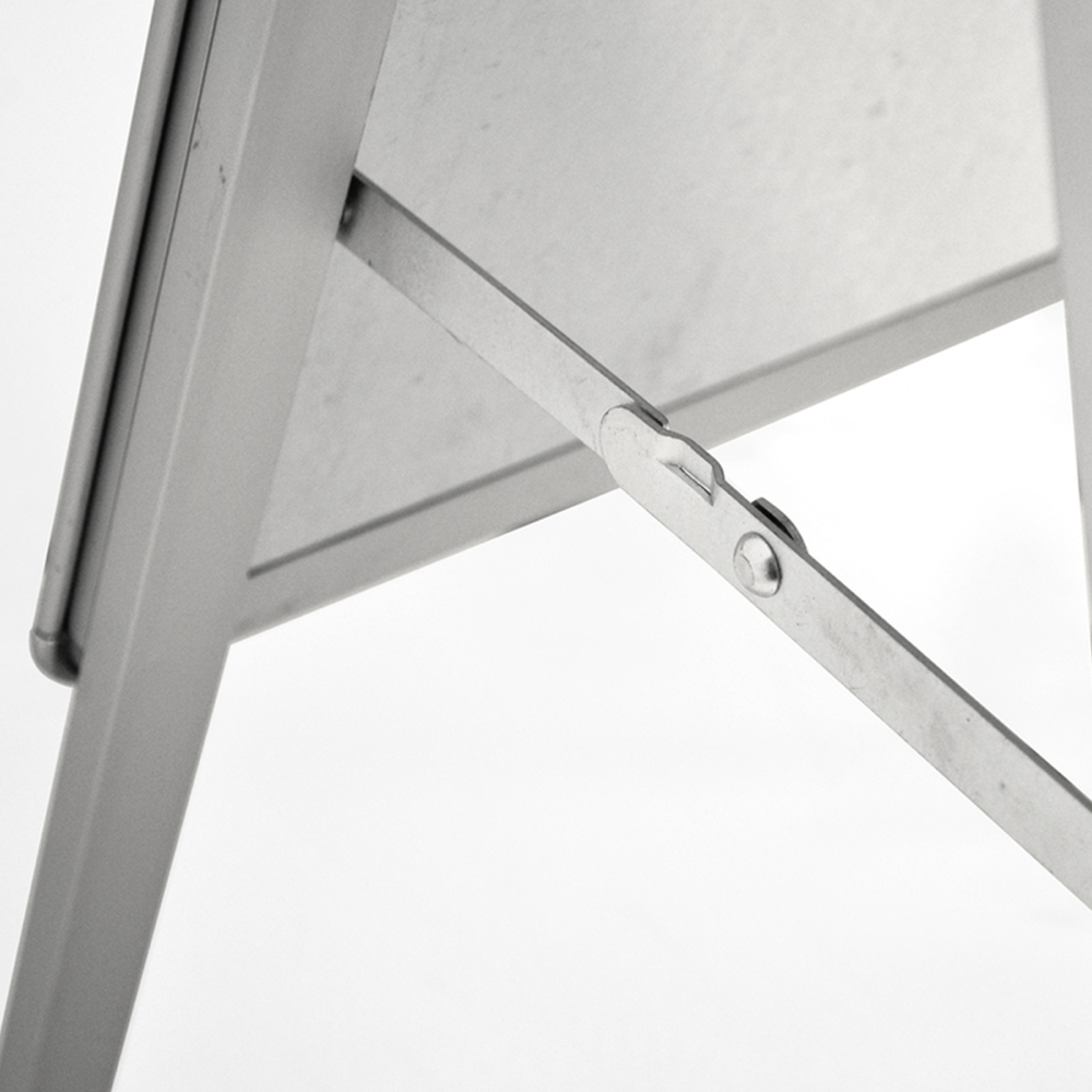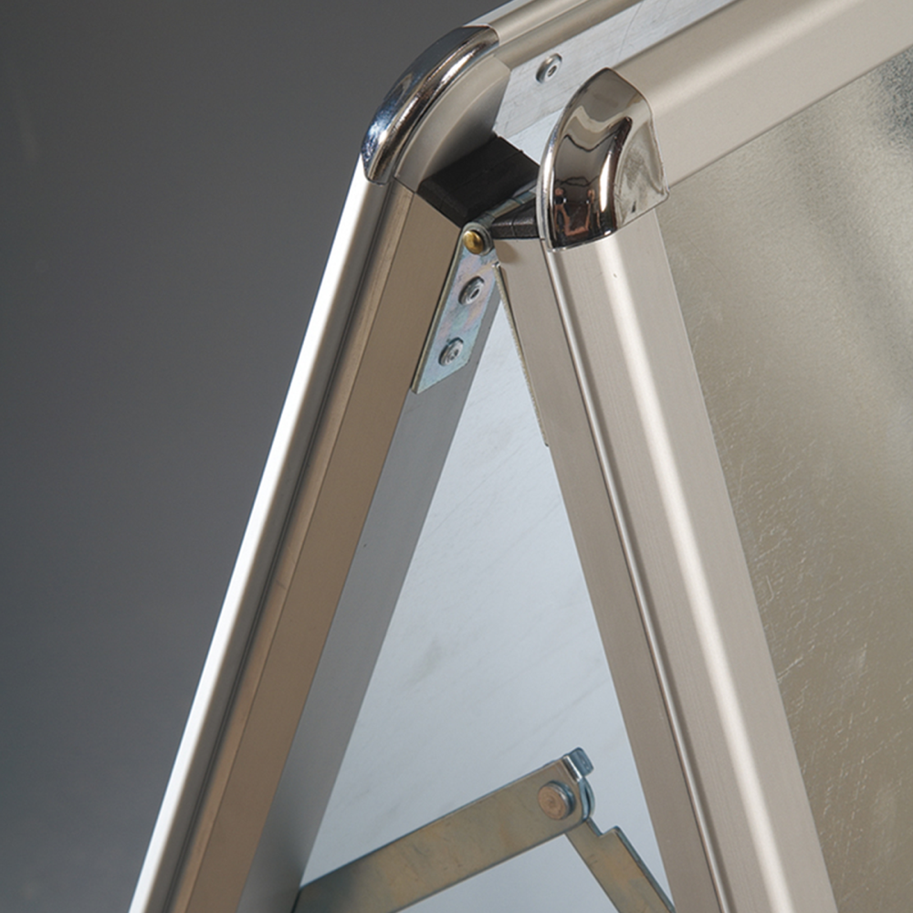 Pied à bascule : Ce stop-trottoir est fabriqué avec de l'aluminium anodisé de haute qualité. Il est facile de changer les affiches du cadre d'accrochage. Le tableau est robuste et possède deux ressorts. Le temps de montage de ce tableau est de 5 minutes.
