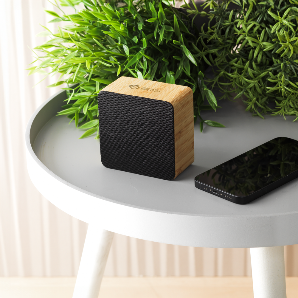 Dynamisez votre son avec cette enceinte élégante et éco-responsable ! Fabriquée en bambou et dotée d'un tissu RPET, elle offre un son clair pour toutes vos occasions. Jusqu'à 6 heures d'écoute et une portée sans fil de 10 mètres. Se connecte facilement à vos appareils favoris. Livrée avec câble de charge USB-C et manuel d'utilisation dans une boîte en carton.