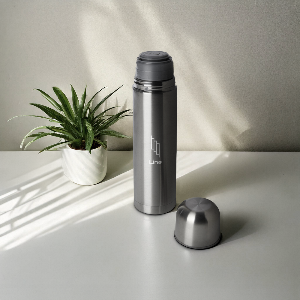 Restez hydraté en déplacement avec ce flacon isotherme à double paroi, doté d'un couvercle coupe pratique. Il est équipé d'un bec à bouton-poussoir qui se scelle automatiquement une fois fermé. Parfait pour les boissons chaudes ou froides, c'est un choix idéal pour un usage quotidien. De plus, il est fabriqué en acier inoxydable recyclé éco-responsable, pour un choix durable.
