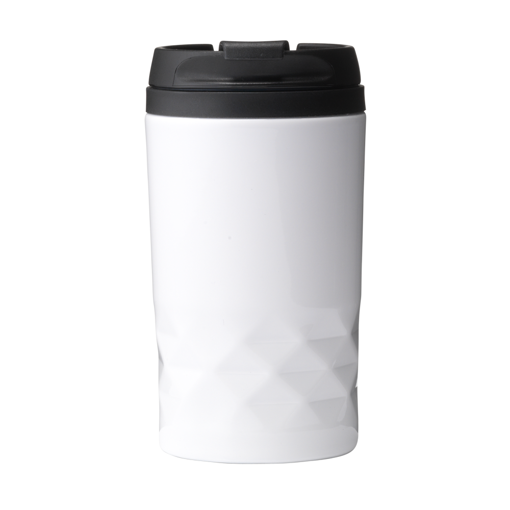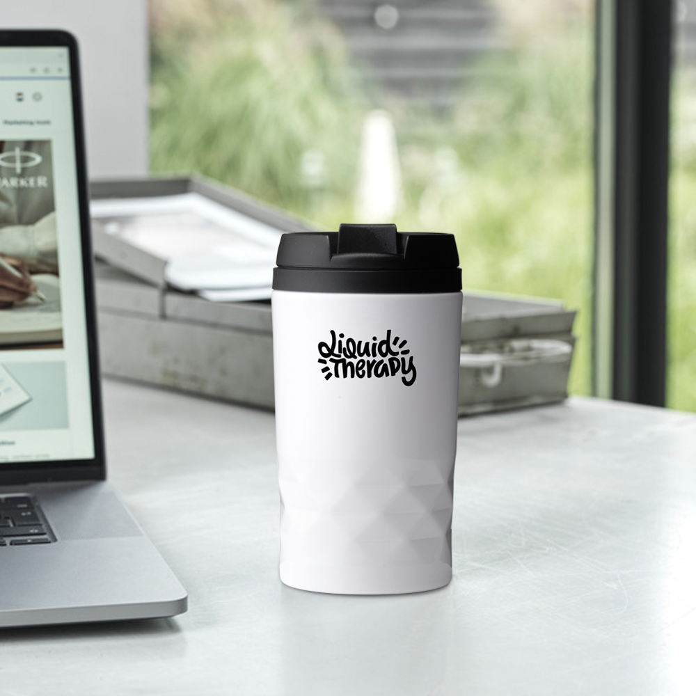 Gardez votre boisson chaude avec cette tasse thermos chic à double paroi. Elle présente un motif de diamant géométrique 3D frappant et un fond antidérapant. Fabriquée avec 42% de matériel recyclé, c'est un choix dont vous pouvez être fier. Livrée avec un couvercle à vis pratique et une ouverture clic, chaque set est emballé individuellement.