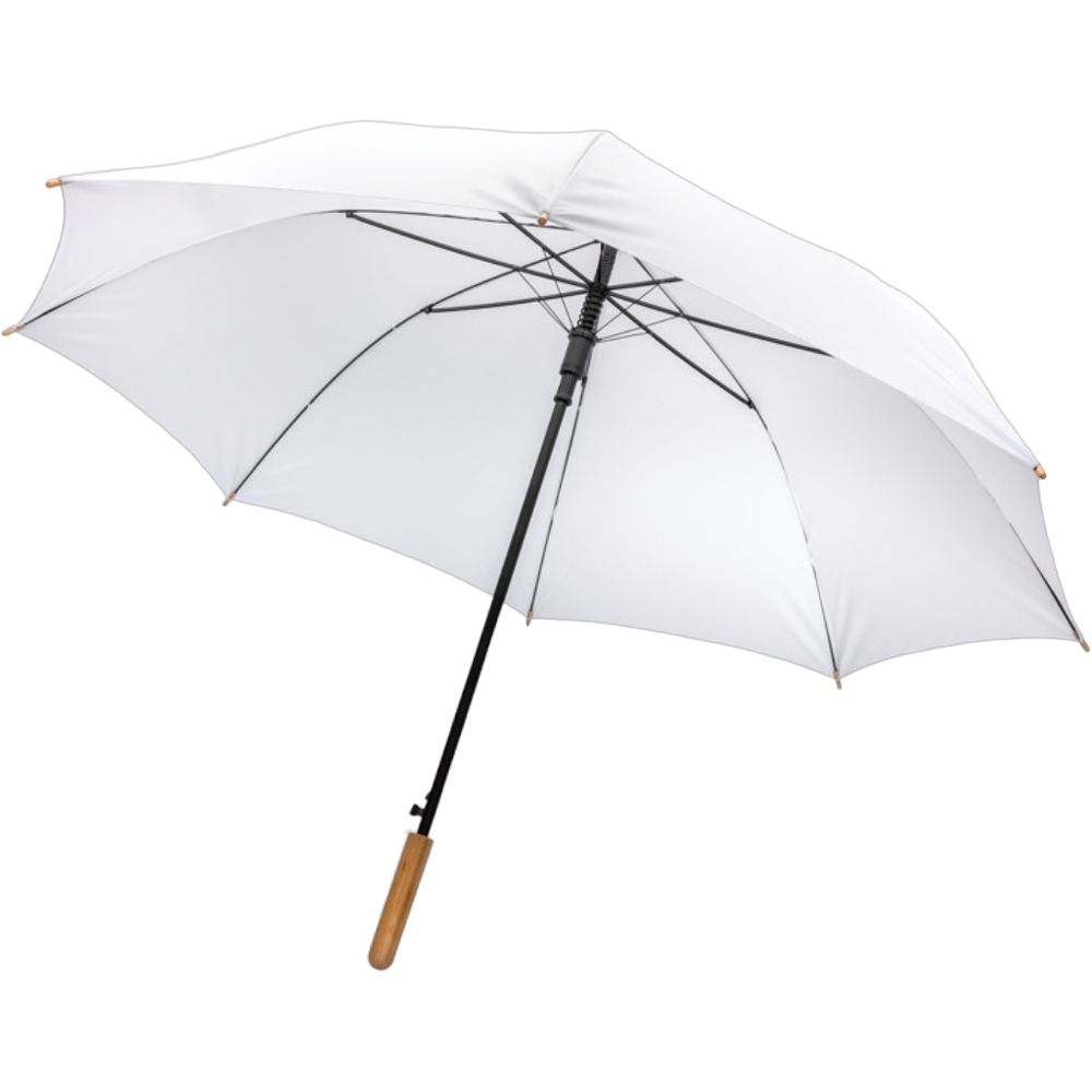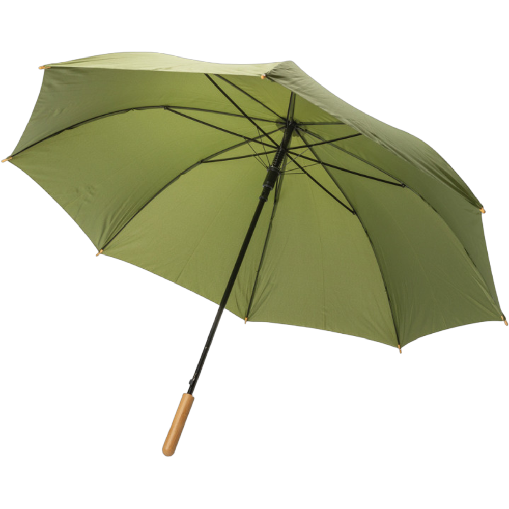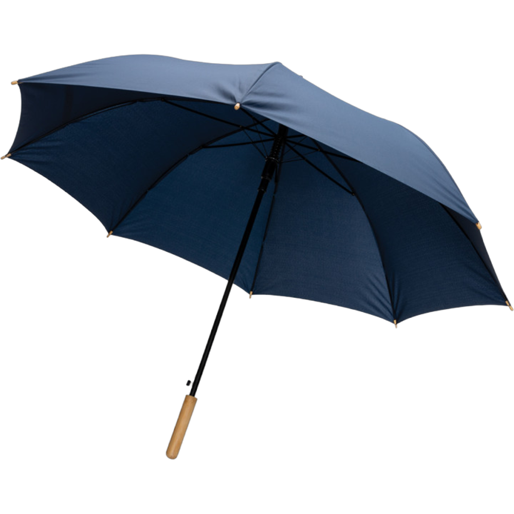 Adoptez une véritable durabilité ! Ce grand parapluie automatique vous garde au sec, où que vous soyez. Conçu avec un tissu recyclé, il est à la fois éco-responsable et élégant. Structure en métal, baleines en fibre de verre, et une magnifique poignée en bambou. Économisez l'eau et faites une différence à chaque utilisation.