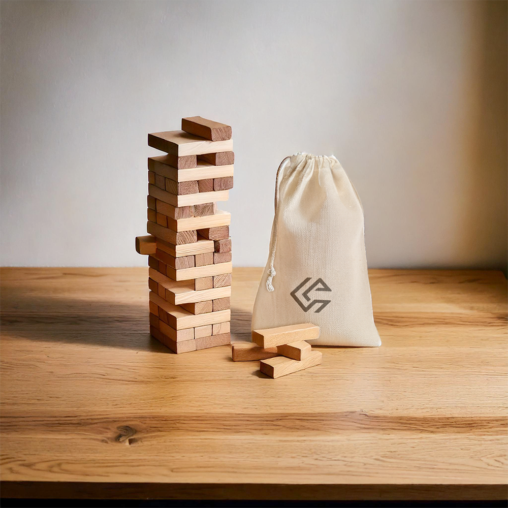 Mettez à l'épreuve votre sens de l'équilibre avec ce jeu classique de tour en bois ! Idéal pour des moments conviviaux ou une partie en solo relaxante. Le set comprend 54 blocs de bois, emballés dans un sac en coton pour un rangement et un transport faciles.