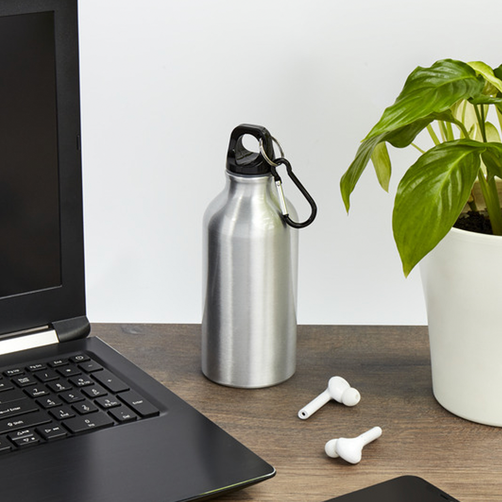Rester hydraté n'est plus un problème avec cette bouteille d'eau de 400 ml fabriquée à partir d'aluminium recyclé certifié RC. Idéale pour les entraînements, les excursions d'une journée ou les heures de bureau, cette bouteille Oregon est dotée d'un couvercle à visser et d'un mousqueton pour une fixation sécurisée aux sacs. La bouteille, fabriquée à 87% à partir d'aluminium recyclé, est sans BPA et principalement composée de plastique.