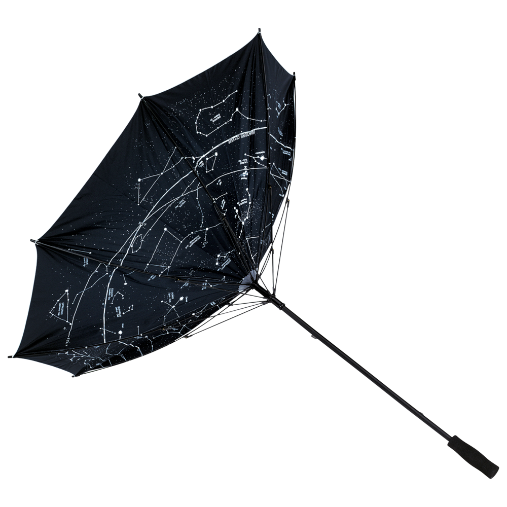 Restez au sec et élégant avec ce parapluie résistant aux tempêtes. Il possède un auvent en nylon 190T et s'ouvre automatiquement avec une poignée télescopique. Le cadre en fibre de verre est durable, et la poignée souple assure le confort. Une attache velcro le maintient compact. Le dessous révèle une galaxie d'étoiles, ajoutant une touche magique. De plus, il filtre la lumière et la chaleur du soleil, vous gardant au frais.