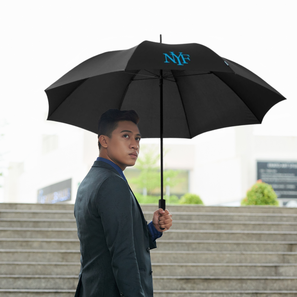 Le Parapluie Halo Exclusive Design est doté d'un manche en métal et de baleines en fibre de verre, avec une poignée en plastique recouverte de caoutchouc. Chaque parapluie est fourni avec une pochette de couleur assortie à la canopée.
