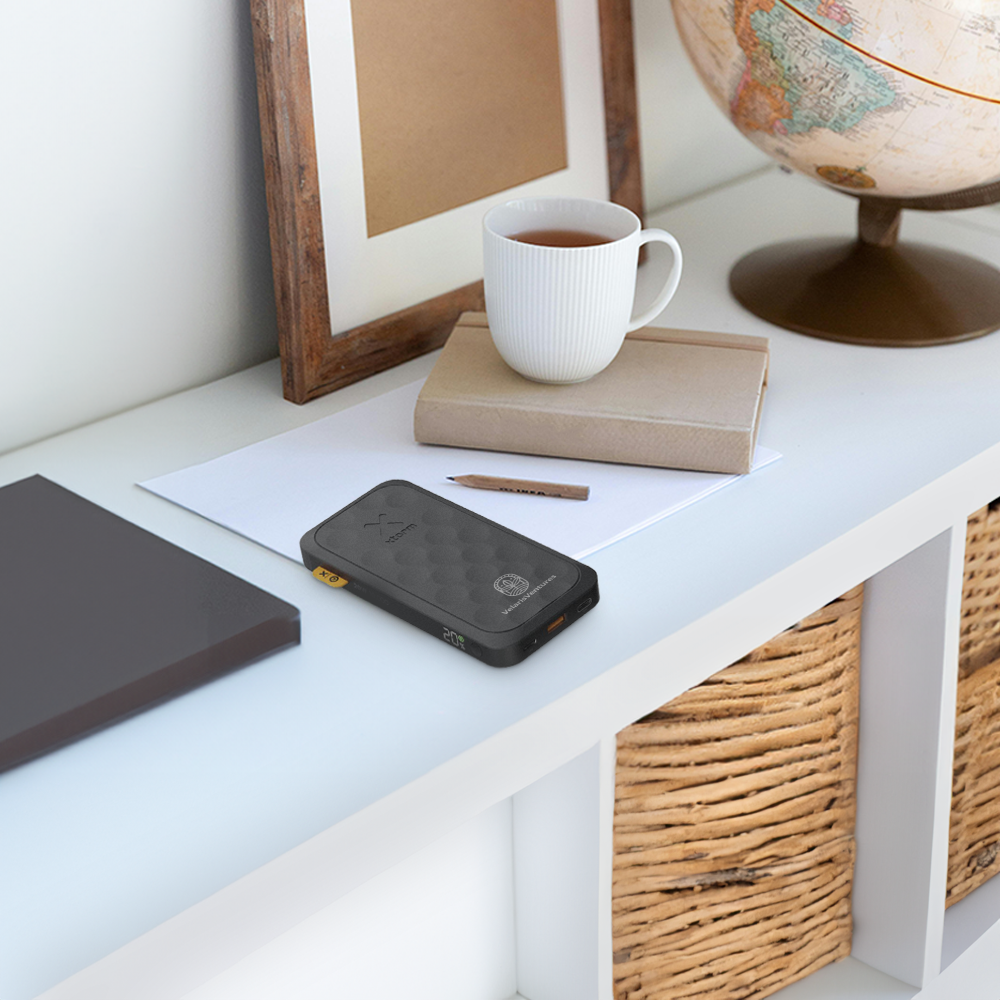 Restez chargé avec ce power bank pratique. Avec 2 ports USB-C et un port USB-A, il est parfait pour une charge rapide de tous vos appareils. Sa couleur subtile et son design unique en font un accessoire élégant à transporter. Livré avec un câble USB-C vers USB-C et un manuel d'utilisation.