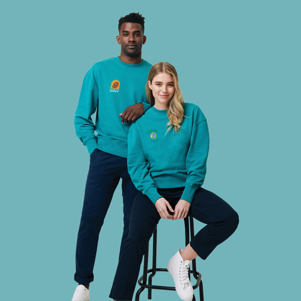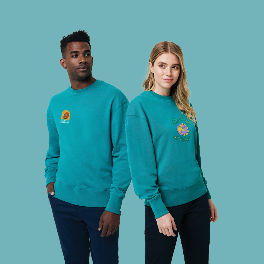 L'impression de Pull en coton recyclé à col ras du cou Iqoniq est différente de l'impression sur papier, il n'y a pas deux pièces identiques. Il est toujours possible qu'il y ait une légère déviation dans la position de l'impression. Toutefois, celle-ci est minime et souvent non visible une fois portée.