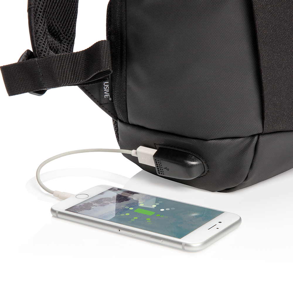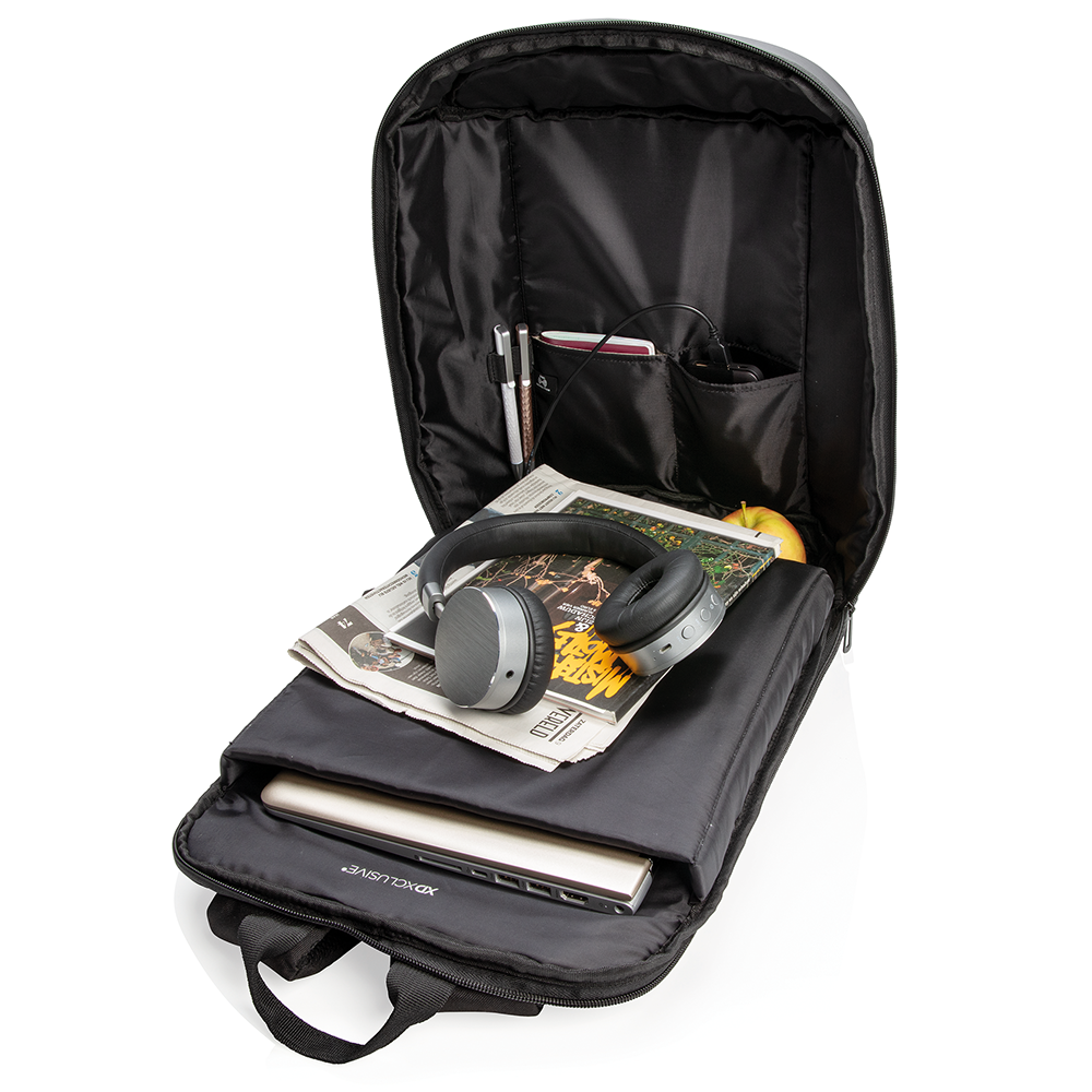 Gardez vos objets de valeur en sécurité avec ce sac à dos conçu intelligemment. Son intérieur matelassé protège votre ordinateur portable, tablette et plus encore. Doté de poches avec protection RFID et d'une sortie USB latérale, il facilite les déplacements avec votre technologie. Sans PVC et élégant, il est parfait pour le navetteur moderne.