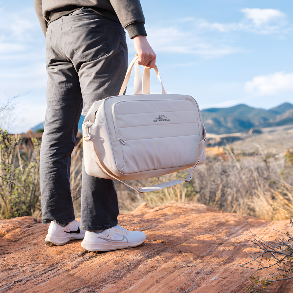 Ce sac de voyage moderne et épuré est parfait pour vos déplacements. Son design sobre et son compartiment principal spacieux facilitent le rangement de tous vos essentiels. Fabriqué en polyester recyclé, c’est un choix intelligent et écologique pour toutes vos escapades.