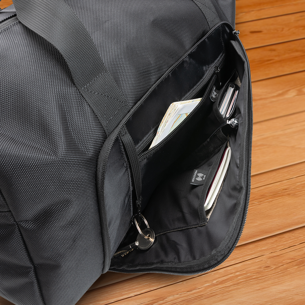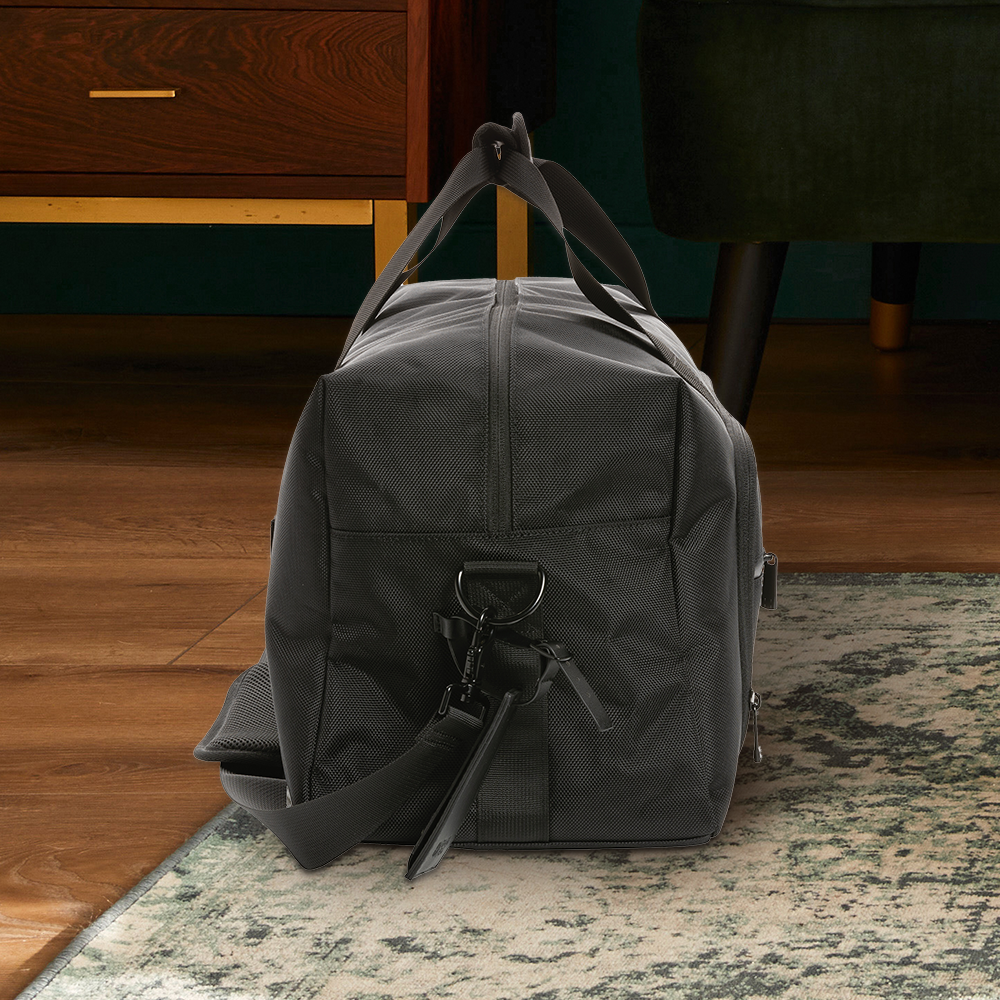 Sac weekend Swiss Peak Voyager en rPET AWARE est une version moderne d'un sac de voyage, conçu avec des matériaux respectueux de l'environnement. Il est fabriqué à partir de polyester recyclé 1680D pour l'extérieur, agrémenté de détails en PU de haute qualité, tandis que l'intérieur est doublé de polyester recyclé 150D. Ce sac est le compagnon idéal pour un week-end en déplacement. Il offre un compartiment principal spacieux ainsi qu'une poche intérieure à fermeture éclair pour garder vos affaires bien organisées. La poche frontale zippée comporte plusieurs compartiments pour une organisation interne pratique. En plus, il est équipé d'une étiquette à bagages et de poches anti-RFID. En résumé, il s'agit d'un incontournable pour un week-end détente. Sa fabrication à partir de polyester recyclé à l'extérieur et à l'intérieur contribue à un voyage durable.
