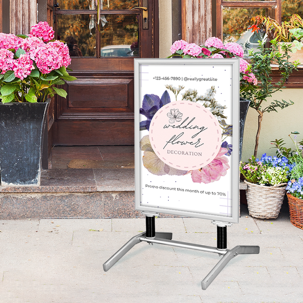 Avec les stop-trottoirs sur ressort d'iBiz®, vous avez la possibilité d'afficher efficacement votre message publicitaire qu'importe la météo ! Disponibles pour un format particulièrement populaire A0 et A1, vous vous assurez une visibilité sans précédent auprès des passants. Fabriqués en aluminum anodisé et plastique, votre stop-trottoir est résistant au temps, bien que pas totalement waterproof. Pour le format A1 son poids est de 16,6 kg et de 20,4 kg pour le A0. Commandez dès maintenant vos stop-trottoirs sur ressort avec iBiz® et améliorez instantanément votre visibilité !