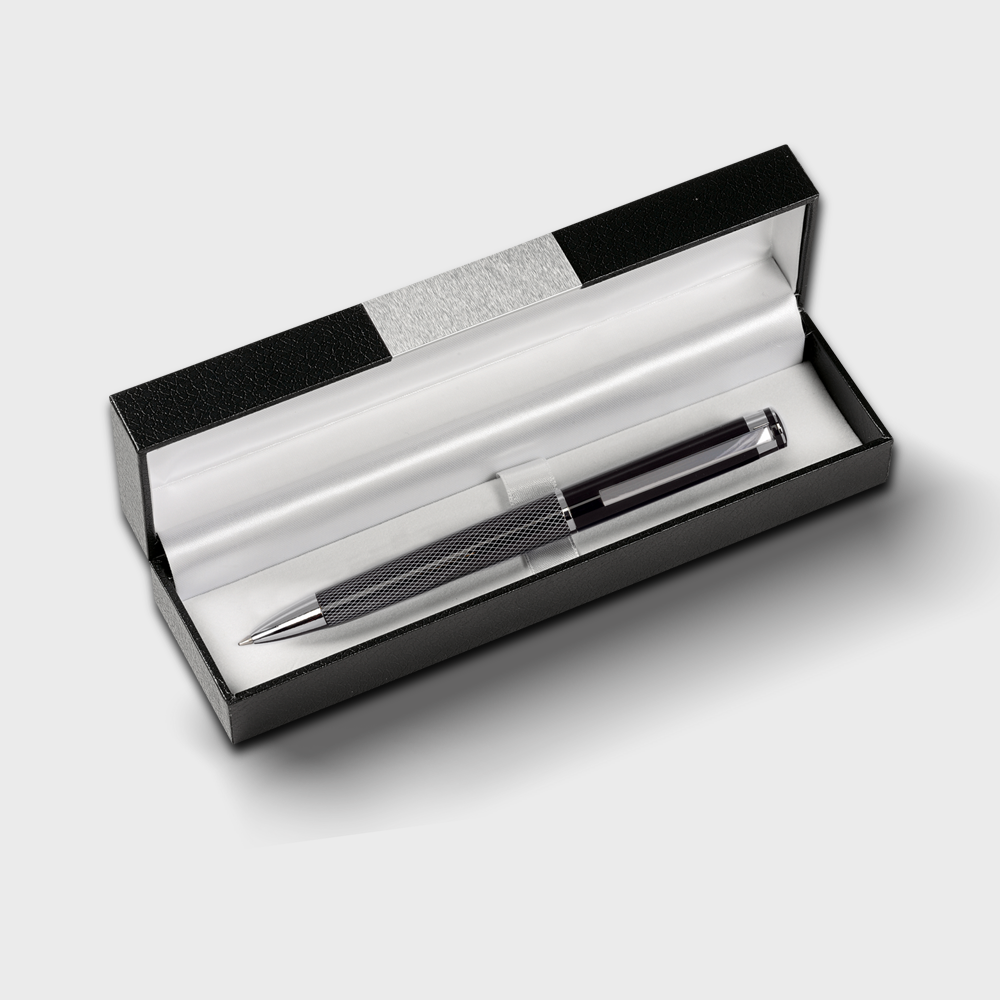 Élégant et sophistiqué, le stylo à bille brillant avec mécanisme de rotation et clip métallique. Livré dans un étui, il est parfait pour les environnements professionnels ou comme cadeau.
