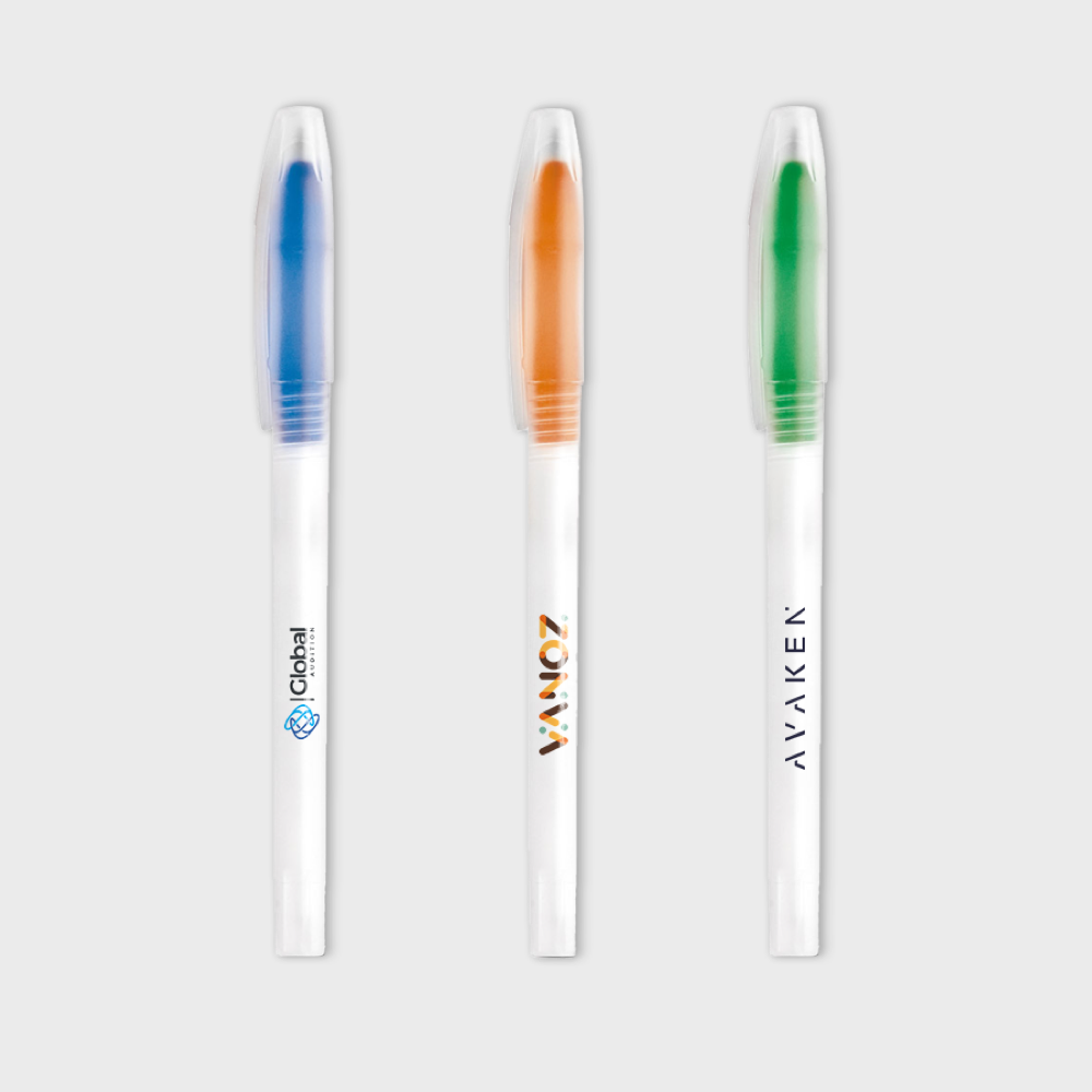 Stylo blanc pointe colorée et capuchon translucide