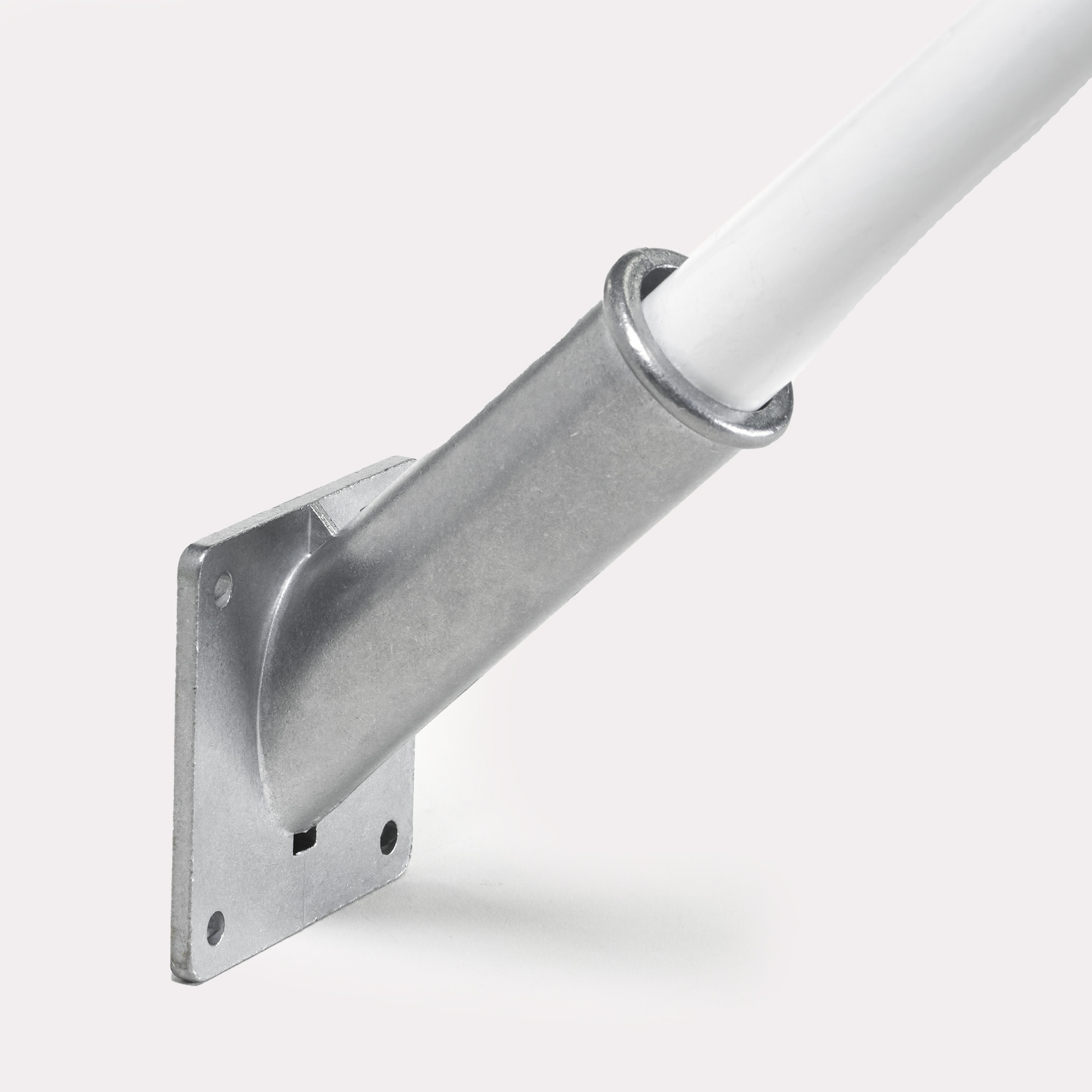 Le support en aluminium pour drapeau mural ou de façade comporte 4 trous pour la fixation sur votre façade ou votre mur (vis non incluses). Ce support permet de suspendre le mât à un angle de 45 degrés et convient aux mâts de 30 mm de diamètre.