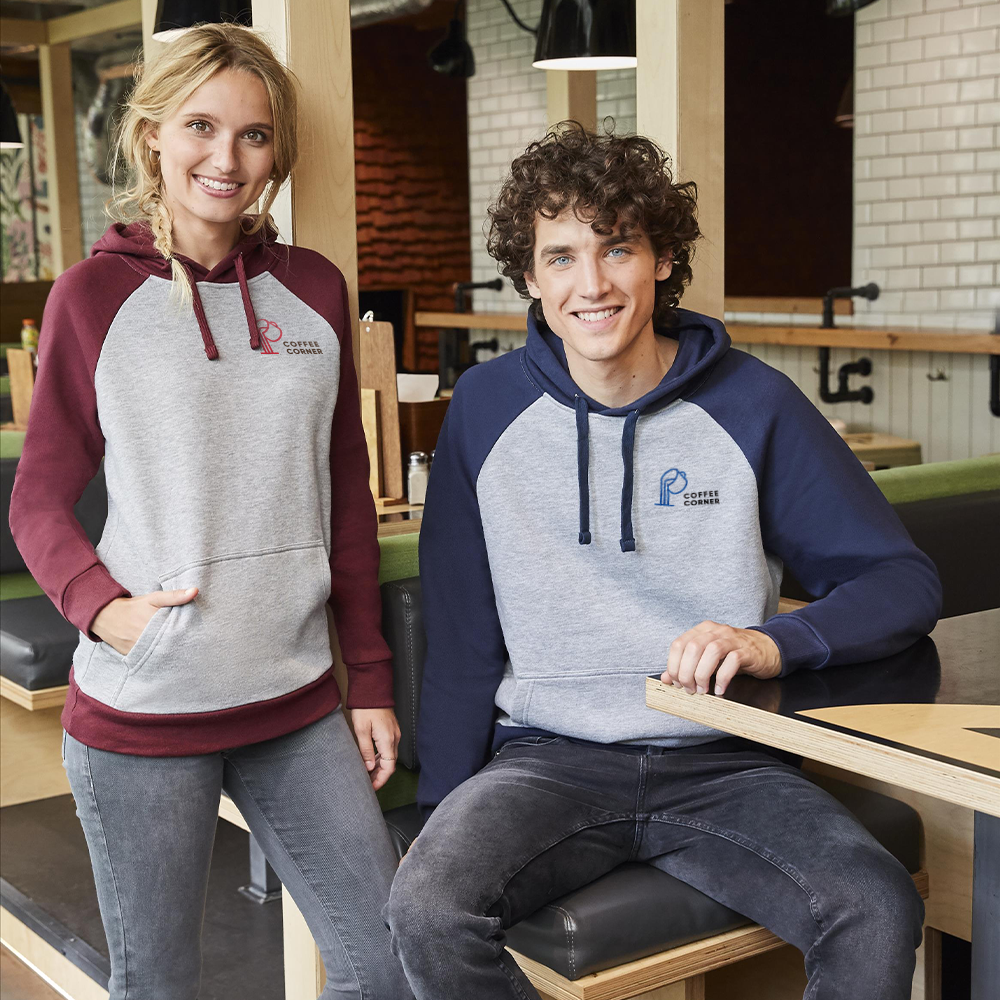 Un sweat à capuche personnalisé avec votre propre marque en quelques clics. Ce sweat à capuche bicolore baseball est le cadeau promotionnel idéal pour vos employés ou vos clients. Fabriqué dans un matériau chaud, doux et de qualité, c'est un article indispensable pour impressionner vos clients. Le sweat à capuche de baseball est unisexe et fait pour être porté à plusieurs reprises. Vous pouvez facilement commander votre sweat à capuche à partir d'une pièce. Disponible en impression numérique ou en broderie.