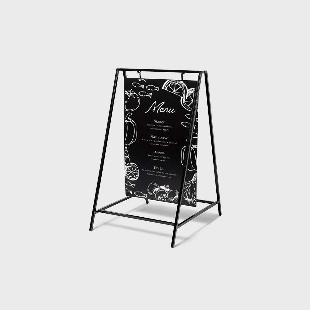 Le Tableau à chevalet Swing est une solution moderne et élégante pour une utilisation extérieure. Doté d’un cadre en acier de 15 mm et d’un panneau en polypropylène, il offre un design minimaliste et épuré. Écrivez vos promotions avec des marqueurs à craie pour un look authentique. Personnalisation possible avec des options d’impression, y compris des logos ou des designs en pleine surface, grâce à une impression UV durable. Idéal pour l’hôtellerie, le commerce de détail et plus encore.