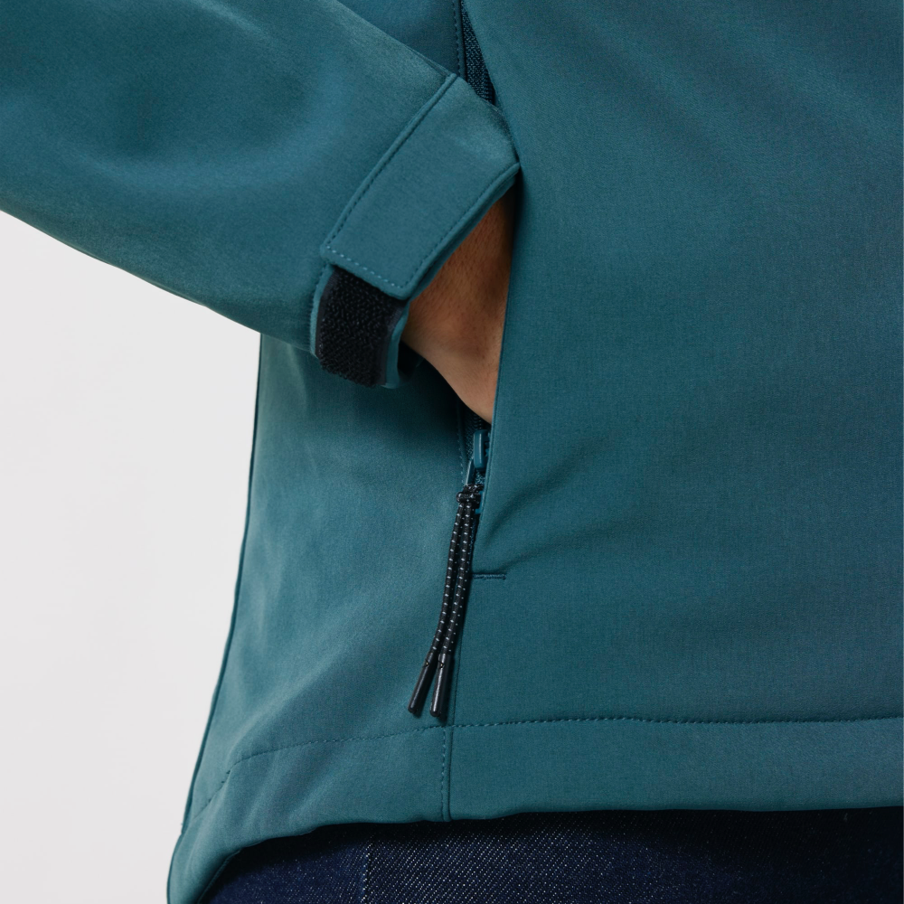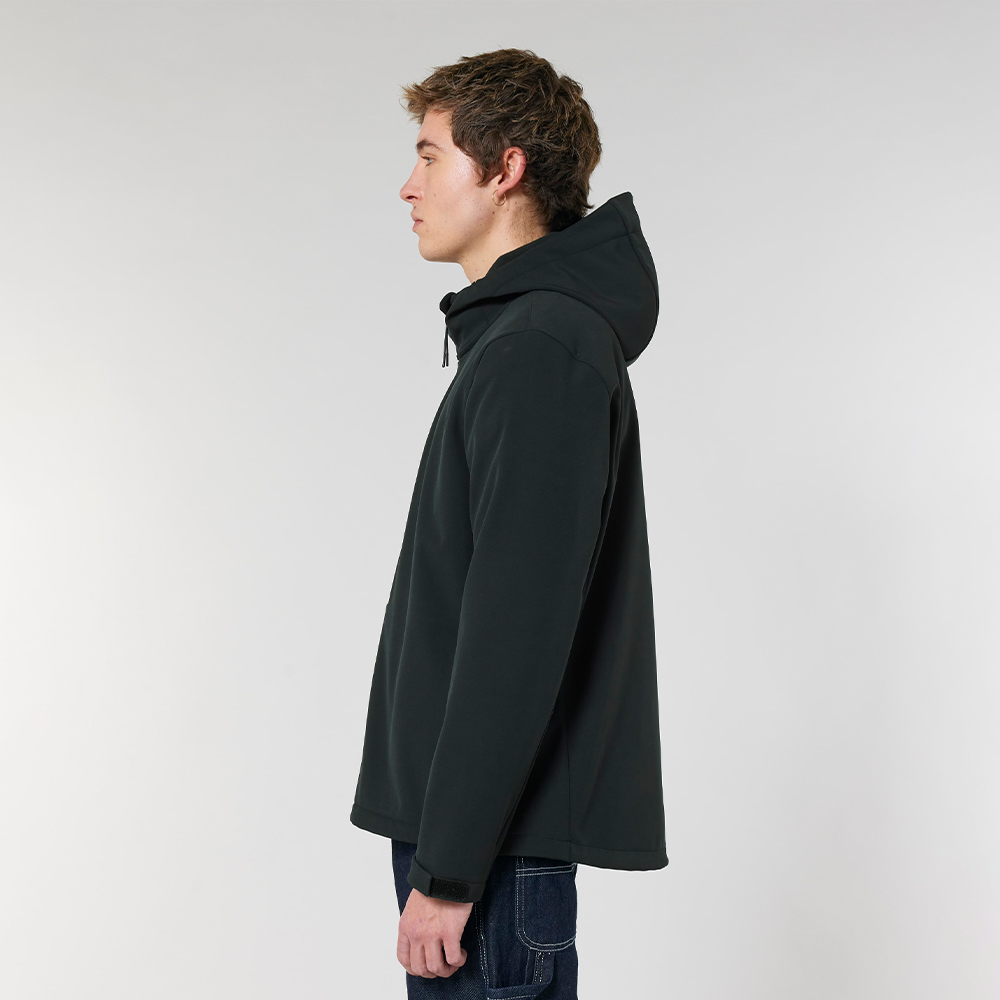 Partez à l'aventure avec notre veste softshell à capuche pour homme, conçue pour affronter les éléments. Cette veste est dotée d'un col montant et d'une capuche réglable, assurant une protection maximale contre le vent et la pluie. Déperlante et respirante, elle vous garde au sec et à l'aise par tous les temps. Le tissu 3 couches entièrement collé comprend une membrane en TPU recyclé et une couche de polaire douillette à l'intérieur pour la chaleur. Les détails réfléchissants sur les poches passepoilées zippées améliorent la visibilité, tandis que les ouvertures de manches réglables par velcro et les panneaux latéraux extensibles offrent un ajustement parfait et une grande liberté de mouvement.