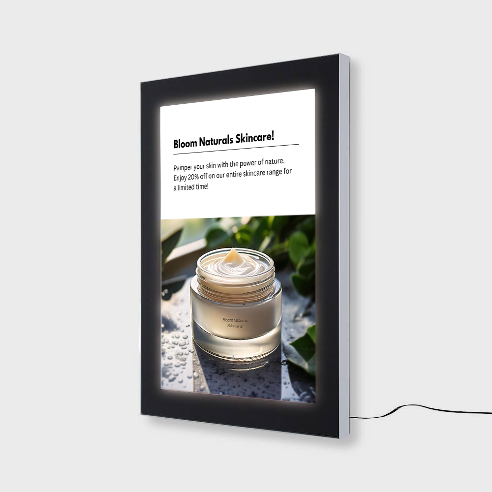 La vitrine LED extérieure premium est conçue pour offrir visibilité et protection à vos affiches. Grâce au verre céramique noir, à la résistance aux intempéries IP56 et au système d'éclairage LED de pointe, elle garantit une illumination optimale et une sécurité accrue en extérieur. La porte verrouillable, le verre de sécurité ESG 4 mm et les vérins à gaz la rendent durable et facile à utiliser. Parfaite pour les restaurants, entreprises et événements nécessitant des présentations extérieures fiables.